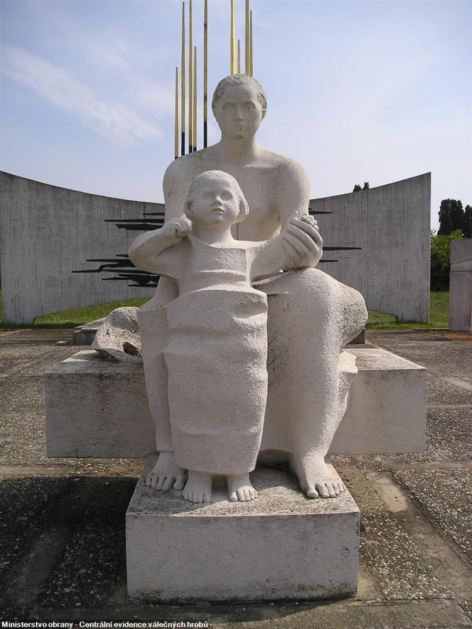 Památník osvobození se sochou matky s dítětem symbolizující mír.